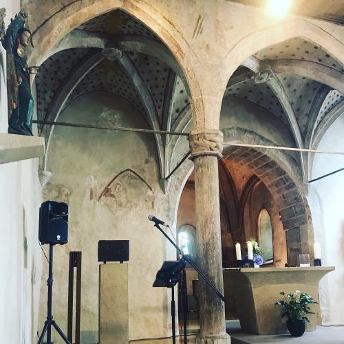 Ungefähr eine Stunde vor Beginn der Trauung bin ich vor Ort, baue auf und mache einen Soundcheck.